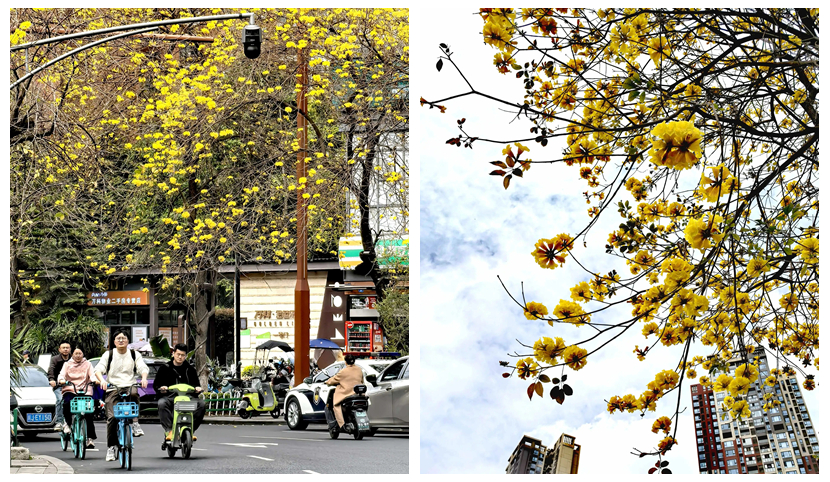 春日融融,成都东郊记忆的黄花风铃木已步入最佳观赏期,成片耀眼的金黄与周边建筑相映成趣,勾勒出独属于春日的浪漫景致,吸引众多市民与游客前来打卡赏花。