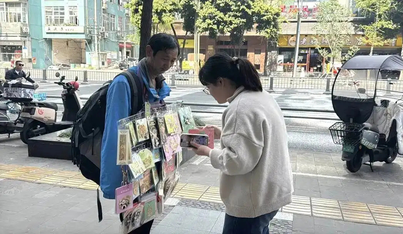 近日,一外地游客在成都文殊院附近偶遇无臂大叔售卖冰箱贴的经历在网络发酵,让这位自食其力的大叔走进大众视野。