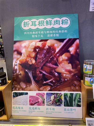 折耳根粽子同样也是争议性颇大的新口味,引起不少人的关注。工作人员告诉记者,这是专为四川人打造的粽子口味,“用四川人常吃的泡椒与折耳根融合,用辣味掩盖腥味,凸显折耳根的独特香味。”