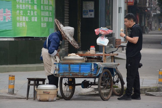 陈少洪的家,距离摆摊的路口只有不到30米。因为14日是端午节,平日里只卖一锅粽子的他,当天特地多煮了一锅粽子,没想到拉出去一个小时就卖完了。“今天收了个早工,明天休息一天。”见父亲将三轮车慢慢推回家,小女儿陈惠秋一边叮嘱父亲,一边赶忙上前打开两扇木门,帮父亲收拾。