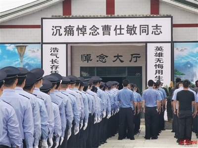 6月19日上午,四川绵阳市梓潼县因公殉职民警曹仕敏遗体送别仪式,在梓潼县殡仪馆举行。他的亲朋好友、生前战友以及各界群众前来送别。公安部政治部、四川省公安厅政治部发来唁电。