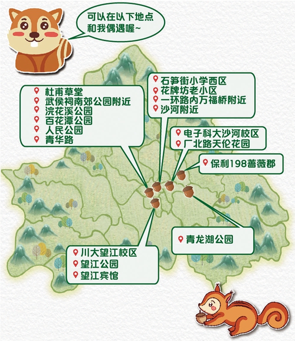 从成都东部的青龙湖到西边的浣花溪;从川大望江校区这样的校园,到保利198蔷薇郡这样的居民小区……成都的大街小巷、犄角旮旯,都活跃着松鼠的身影。