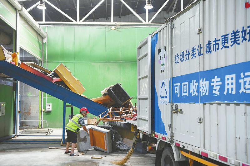在龙泉驿区,有一个大件垃圾处理中心,该中心与社区合作,在各社区、小区物管设置大件垃圾集中堆放点,引导居民集中堆放,同时将宣传工作落实落细。“家里有大件垃圾要扔就联系社区人员,他们会告诉我应该放在哪儿。等集满一车时,处理中心的清运车辆就会来统一拉走。要是居民年纪大了或者行动不方便,社区志愿者会上门帮忙搬。”在当地,居民们对流程十分清楚。