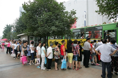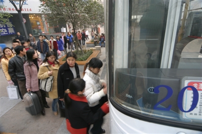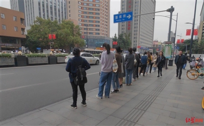 在成都的红星路上,有一道特殊的风景线,人们有序地排成长队,等候乘坐公交车。这就是成都著名的“20路现象”。