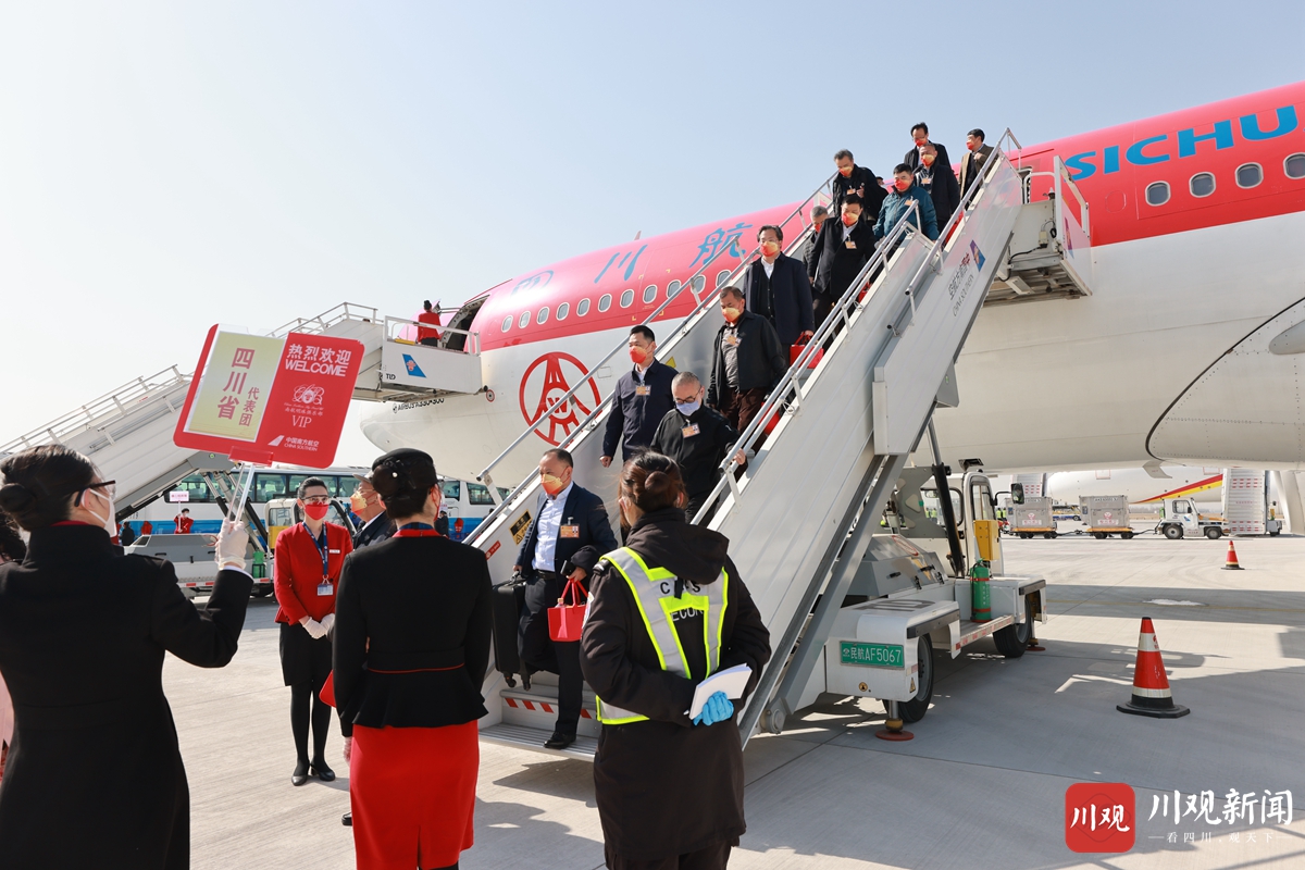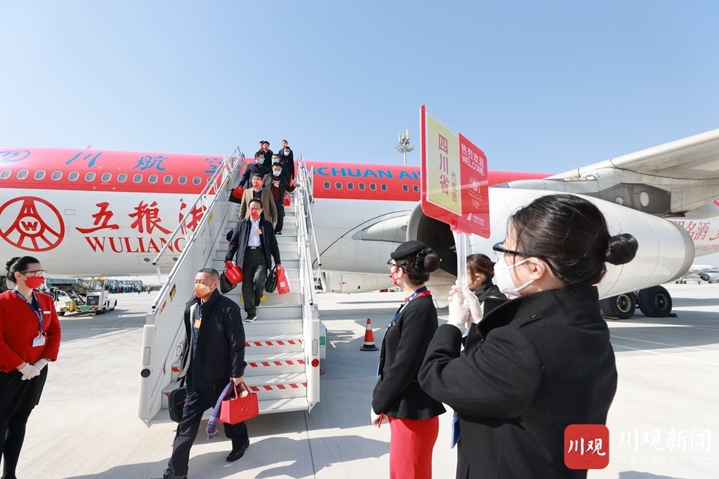 出席十三届全国人大五次会议的四川代表团代表抵京