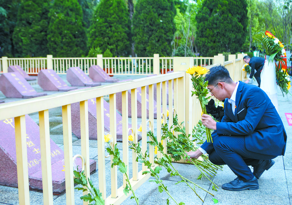 在成都市烈士陵园,成都市消防救援支队也举行了清明祭奠英烈活动,深切缅怀革命先烈,追思英烈事迹。活动中,全体消防救援人员在革命烈士纪念碑前整齐列队,队容严整,齐声高唱中华人民共和国国歌。祭奠仪式后,全体消防救援人员手持鲜花,有序来到烈士墓区,拂去墓碑上的轻尘,深切缅怀在凉山木里森林火灾中牺牲的刘代旭、代晋恺、李灵宏三位成都籍烈士。大家纷纷表示,将弘扬先烈的崇高精神,牢记光荣的革命传统,汲取前行的不竭力量,勇挑重担。