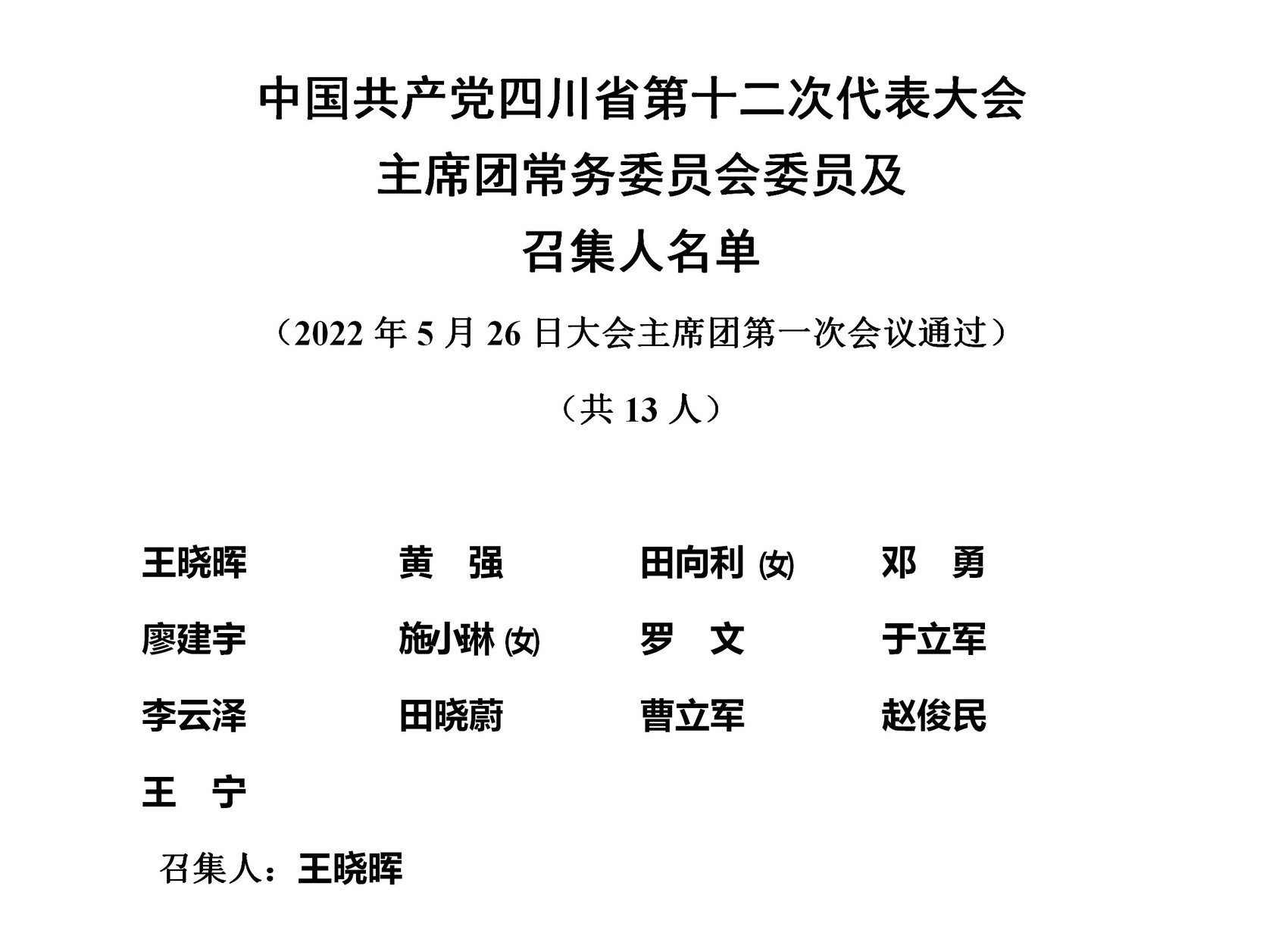 权威发布 | 省第十二次党代会主席团常务委员会委员及召集人名单、副秘书长名单