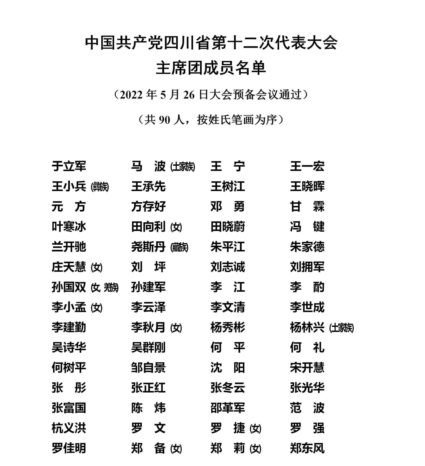 权威发布 | 省第十二次党代会主席团成员名单、秘书长名单、代表资格审查委员会委员名单
