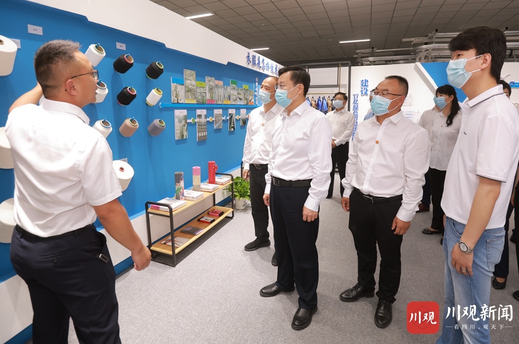 6月30日,省委书记王晓晖到雅安圣善纺织科技公司调研,观看产品展示,了解企业生产经营情况。