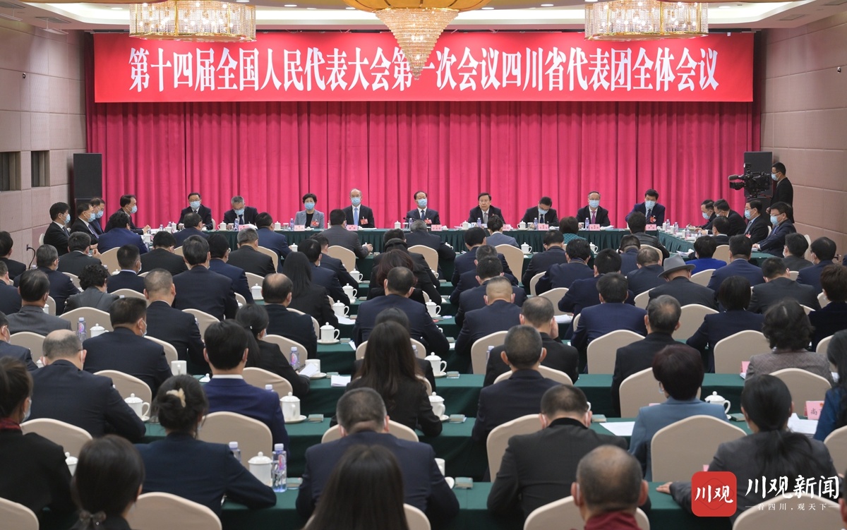 3月12日下午,十四届全国人大一次会议四川代表团在驻地举行全体会议。全国人大常委会副委员长彭清华出席会议,省委书记、省人大常委会主任、代表团团长王晓晖主持会议并讲话,省委副书记、省长、代表团副团长黄强参加。