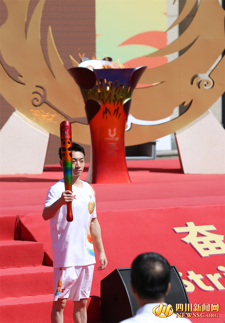 四川新闻网-首屏新闻北京6月10日讯(记者 张宇 摄影报道)6月10日上午,成都大运会火炬传递在北京大学举行。奥运会体操冠军、成都大运会报名运动员邹敬园担任第一棒。