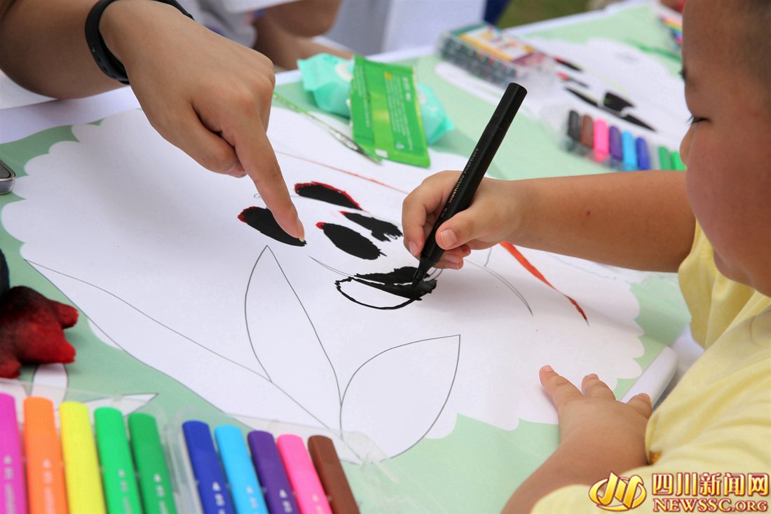 四川新闻网-首屏新闻成都7月6日讯(记者 张宇 王海波 乔永祯 摄影报道)成都大运会进入倒计时冲刺,全民迎大运成为万千市民的夏日主题。在倒计时22天之际,“喜迎大运盛会 遇见熊猫故乡”系列活动第二场“31组家庭共绘大运画卷”,于7月6日上午在成都市桂溪生态公园举行。