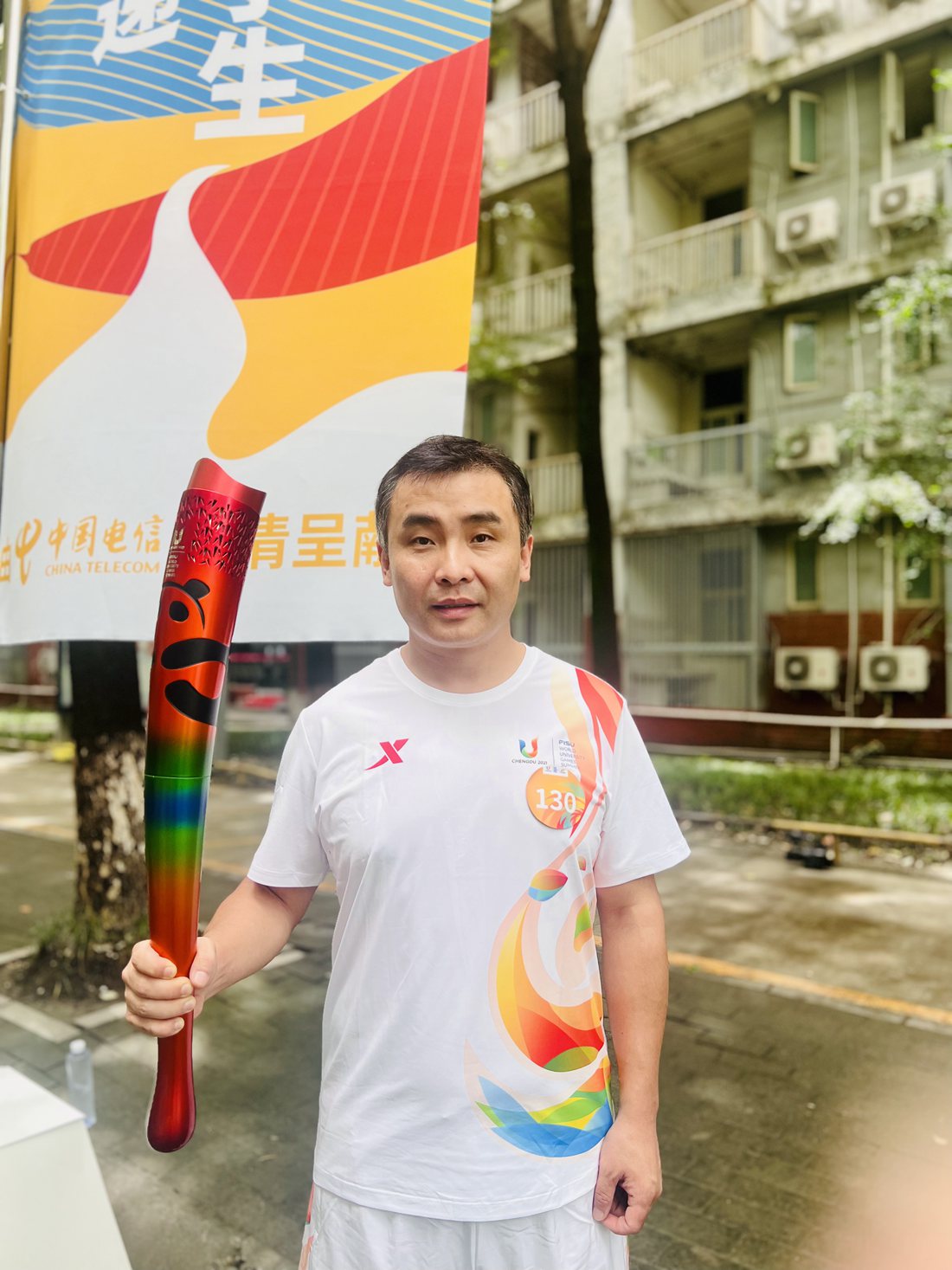 “作为基层公安民警,被选为成都大运会火炬手参加火炬传递,让我感到无比光荣和激动!成都大运会举办期间,我将坚守在金牛区城北体育馆的武术比赛安保工作中,以‘主场、主力、主战、主责’的信心决心,全力以赴做好各项安保工作,以‘细致、精致、极致’的工作作风,全力护航成都大运会首金诞生。”解刚在接受采访时说道。