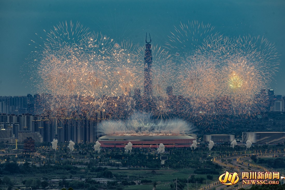 7月28日晚,第31届世界大学生夏季运动会开幕式在成都东安湖体育公园主体育场隆重举行。夜幕降临,万众瞩目的焰火秀终于登场,绚丽的焰火点亮长空,璀璨夺目,震撼全场,也拉开了本届大运会的精彩序幕。
