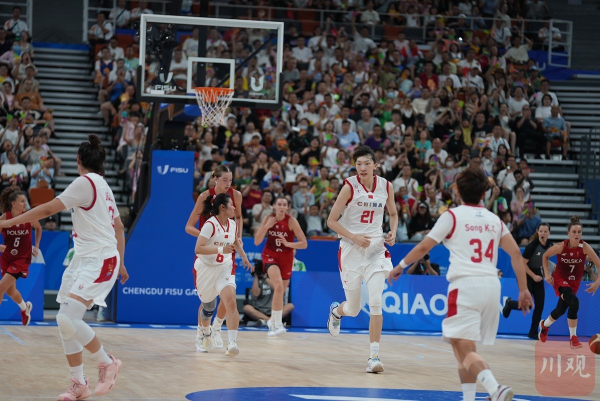 7月30日下午,成都大运会篮球项目比赛继续进行,在凤凰山体育公园篮球馆进行的女子预赛D组一场较量中,中国队以72∶49战胜波兰队,迎来本届大运会两连胜。