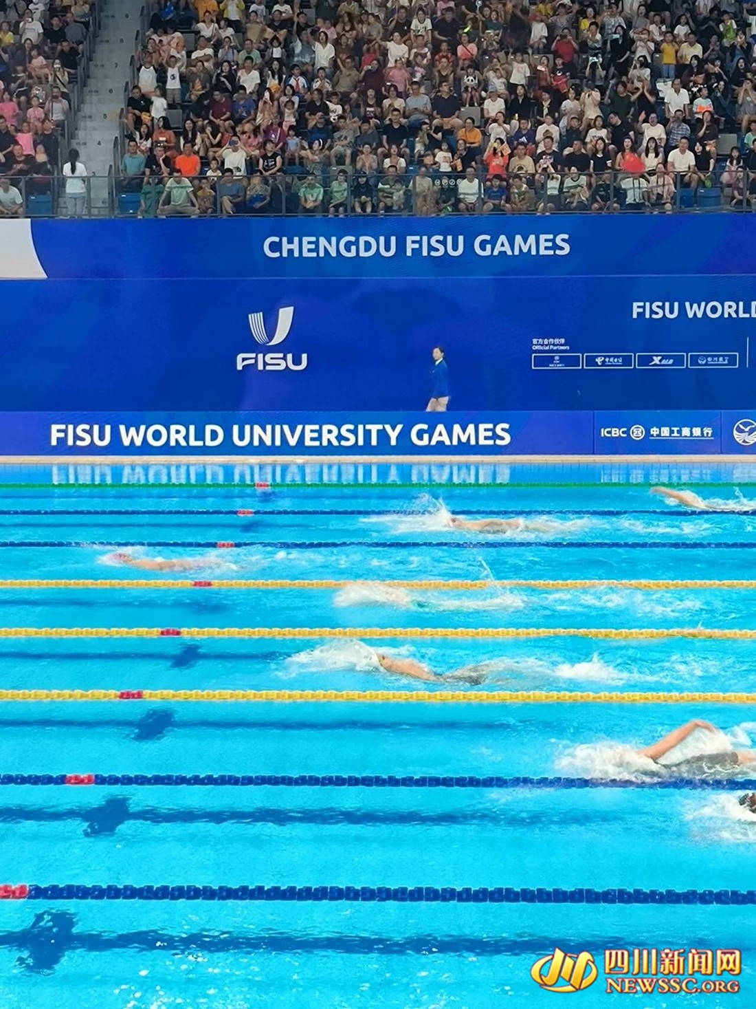 四川新闻网-首屏新闻成都8月2日讯(记者 许雨珂 摄影报道)8月2日,成都大运会游泳项目比赛在东安湖体育公园游泳跳水馆继续进行。