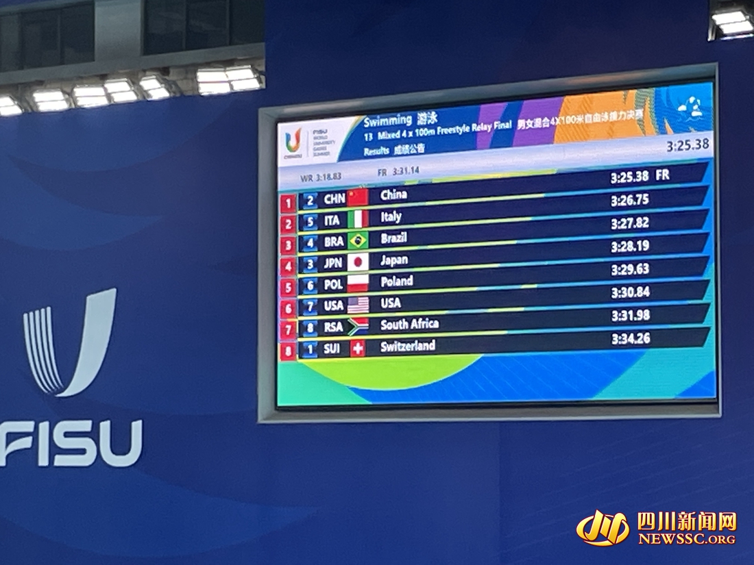 【川网观大运】张雨霏连夺两金!中国队男女混合4×100米自由泳接力夺冠