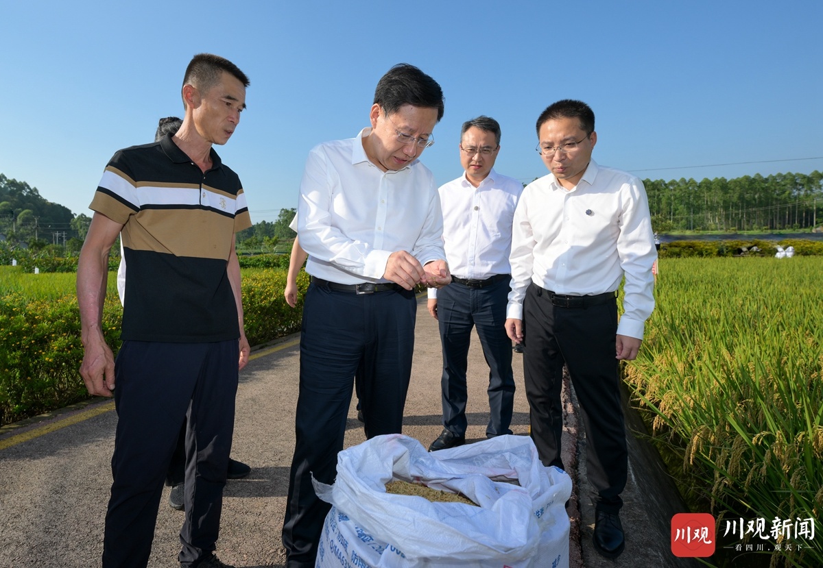8月21日,省委书记王晓晖到荣县赖河坝粮油现代农业园区调研,察看水稻成熟及收割情况,了解秋粮稳产增产及助农增收情况。