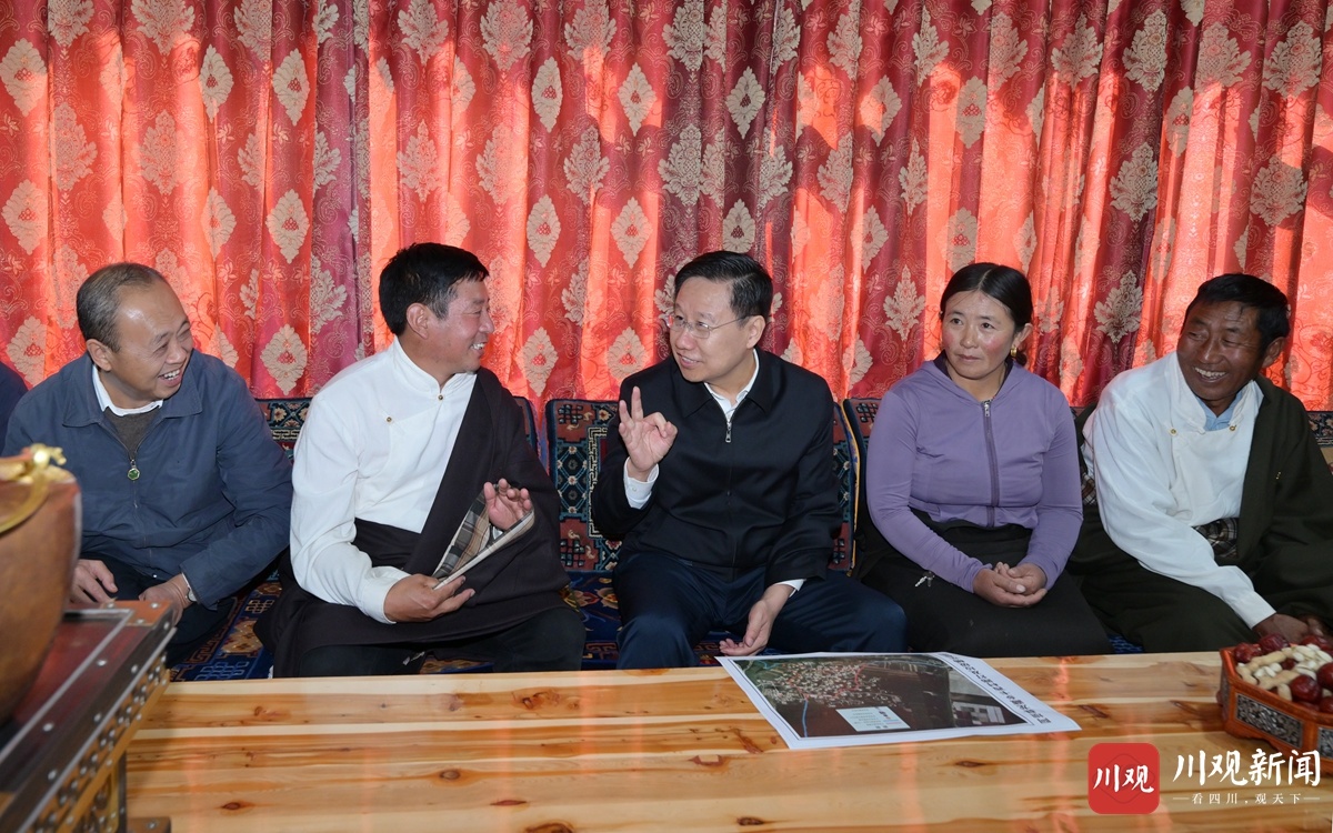 9月14日,省委书记王晓晖到阿坝县龙藏乡卡西村调研,与村民亲切交流,了解他们的生产生活情况。