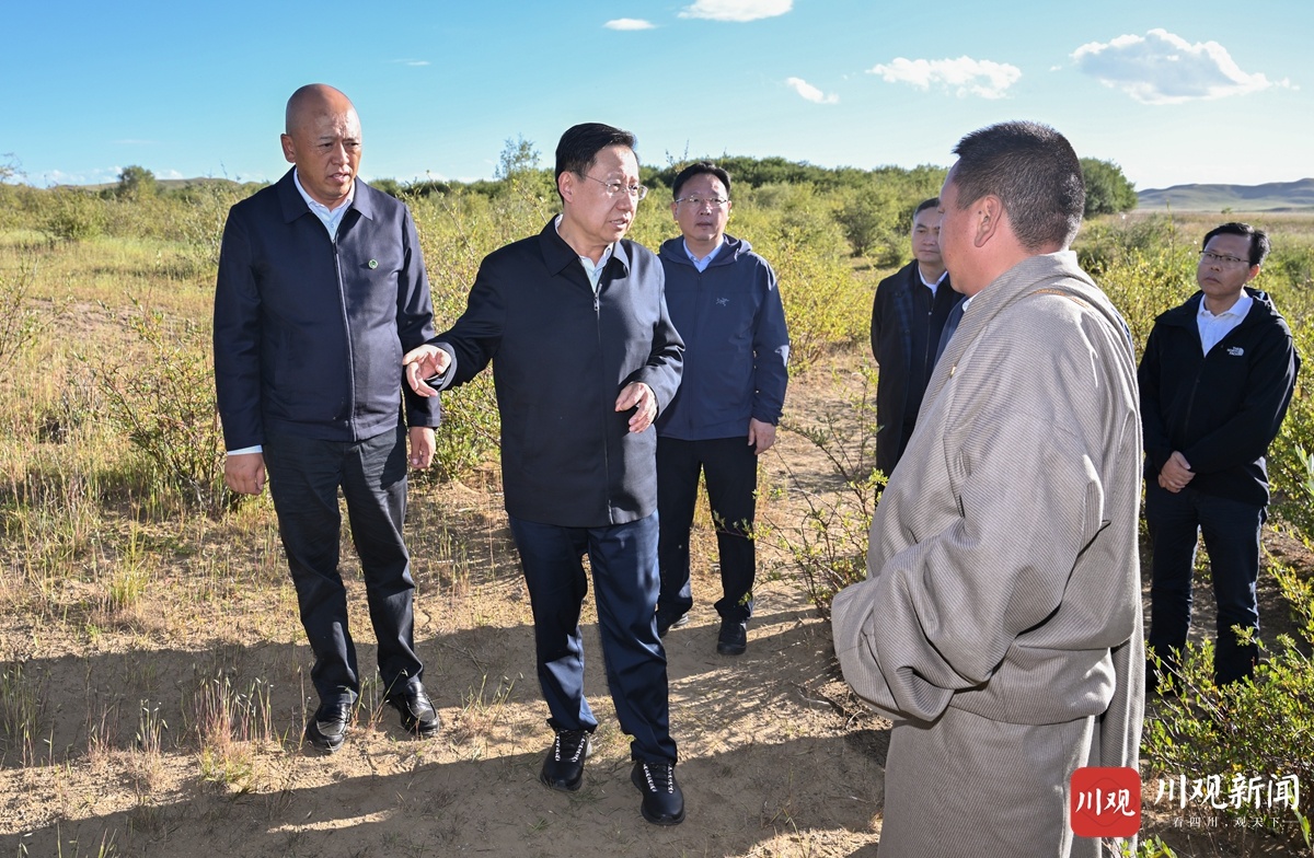 9月13日,省委书记王晓晖到若尔盖县辖曼镇西仓村沙化治理点调研,了解沙化土地治理、草原生态修复等情况。