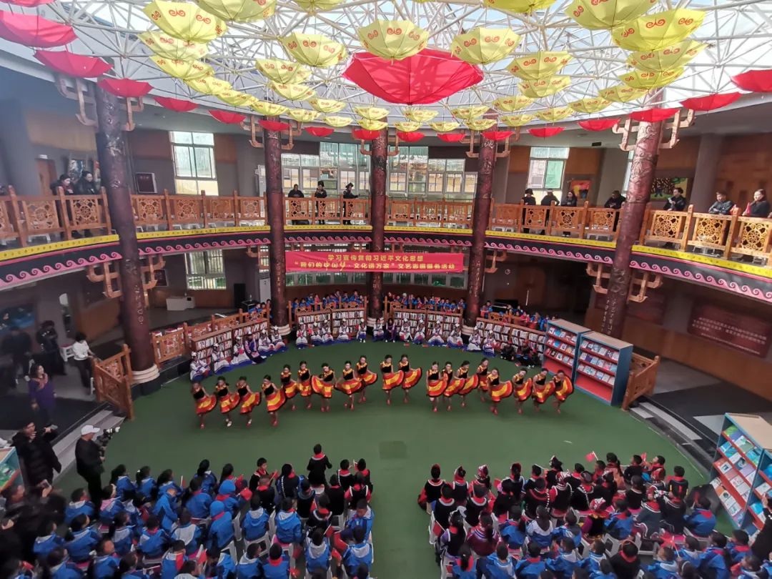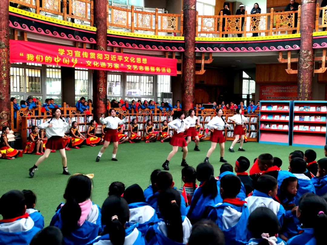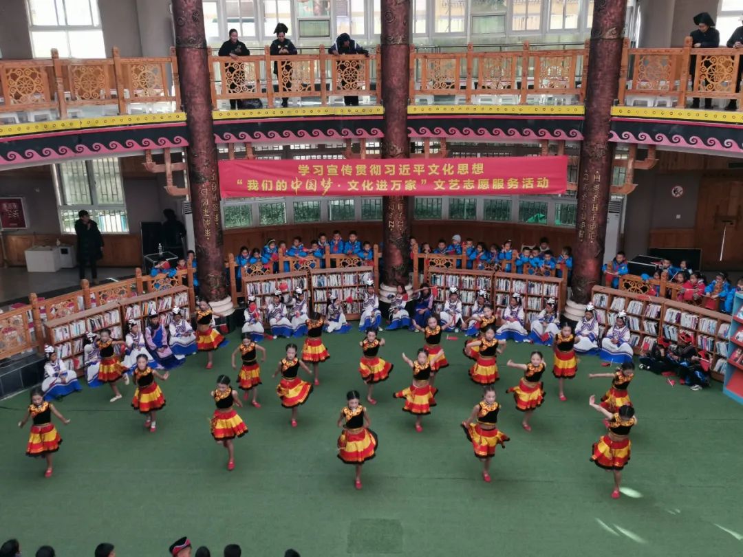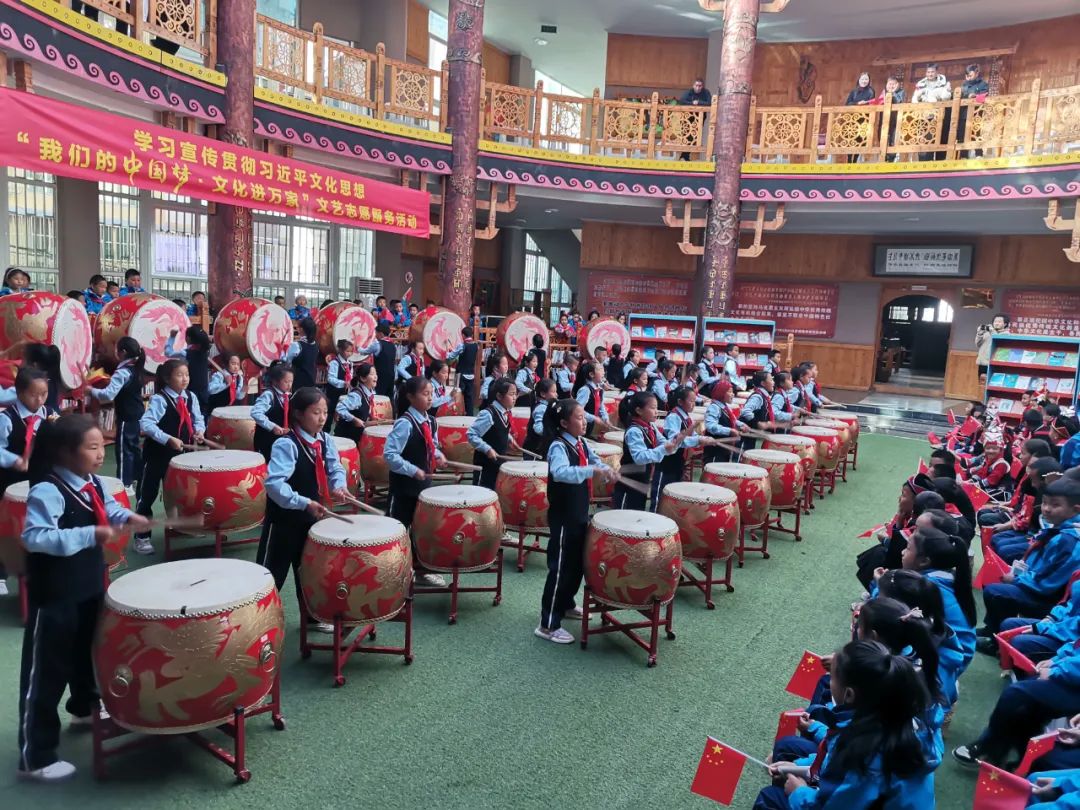 惠民演出在喜德县光明镇中心小学学生表演的鼓舞《少儿中国鼓》壮怀激越的鼓声中开场,《少年中国说》的朗诵穿插其间,尽显中华民族昂扬向上之精神。