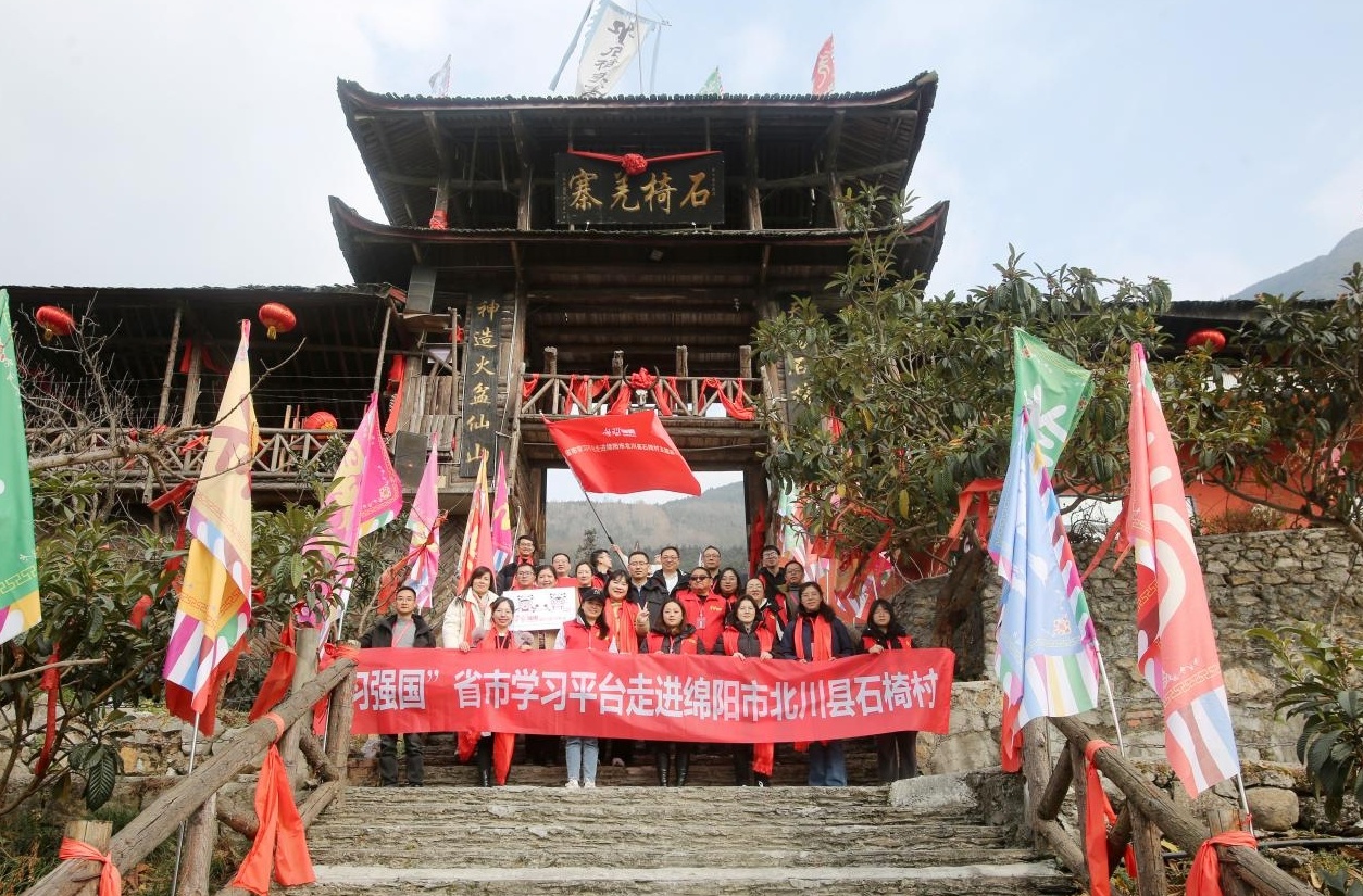 1月18日下午,“学习强国”绵阳学习平台上线仪式在绵阳市北川羌族自治县曲山镇石椅村举行。一年前的今天,习近平总书记视频连线看望慰问石椅村干部群众时嘱托:“新时代的乡村振兴,要把特色农产品和乡村旅游搞好”,并寄语“百尺竿头更进一步”。当天,来自全国20个“学习强国”省、市学习平台的编辑记者走进石椅村开展采风活动,感受石椅村变化。