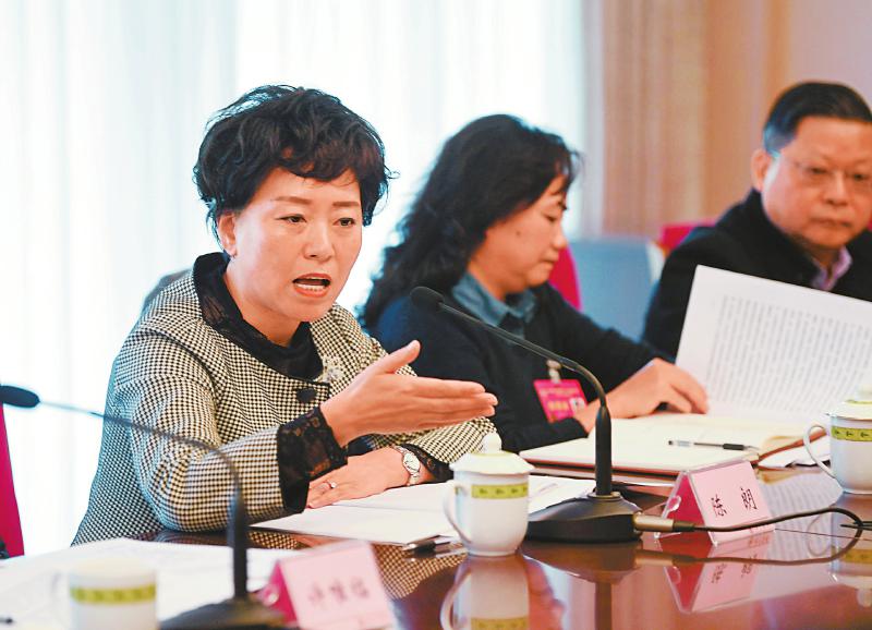 1月21日,在省政协十三届二次会议小组会议上,陈朗委员(左)建议持续加强对“一老一小”问题的协商监督,助力养老和普惠托育事业、产业发展。记者 肖雨杨 摄