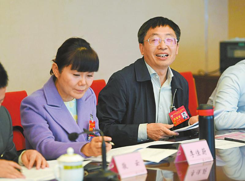 1月21日,在省政协十三届二次会议小组会议上,李忠明委员(右)建议我省出台政策,统筹协调好在川国家级科技创新平台,为服务科技创新和成果转化形成强大合力。记者 肖雨杨 摄