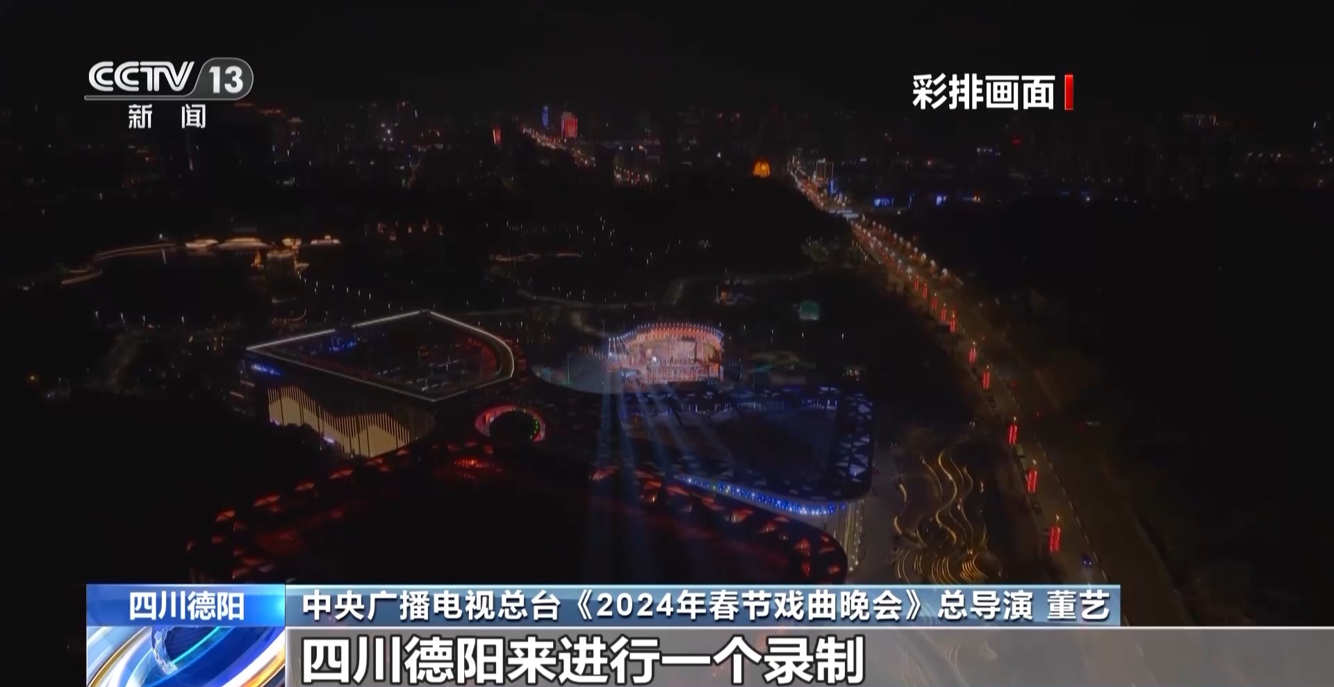 中央广播电视总台《2024年春节戏曲晚会》总导演 董艺:今年同样延续了去年成功的沉浸式的,到地方和地方文旅、文化相结合的,受到老百姓欢迎喜爱的春节戏曲晚会的整体氛围,因此我们就把这一次整体的晚会搬到了四川德阳进行录制。