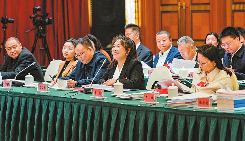 1月23日,马冬梅代表(右一)建议做好“冬游四川”等活动,更好满足来川游客各种消费需求。 记者 何海洋 摄