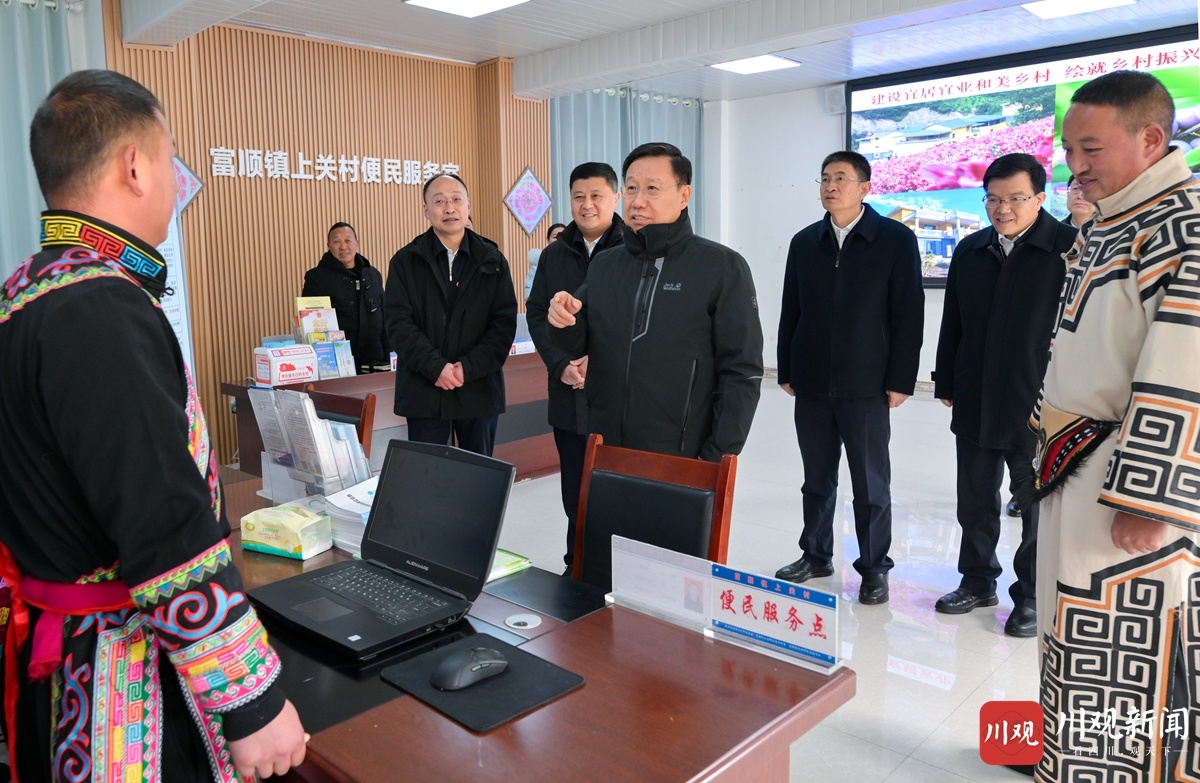 2月4日,省委书记、省人大常委会主任王晓晖到茂县富顺镇上关村调研。在村便民服务室,王晓晖详细询问村里耕地面积、主要产业构成、村集体经济发展、村民收入来源等情况。