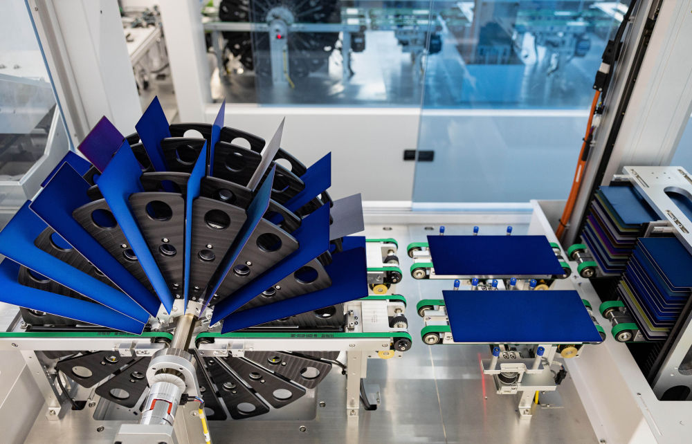 2023年8月22日,位于四川省丹棱县经济开发区的眉山琏升光伏8GW高效异质结电池项目投产,首片高效异质结太阳能电池片正式下线。眉山琏升光伏8GW高效异质结太阳能电池项目,总投资达45亿元,是四川省2023年重点建设项目。新华社记者 江宏景 摄