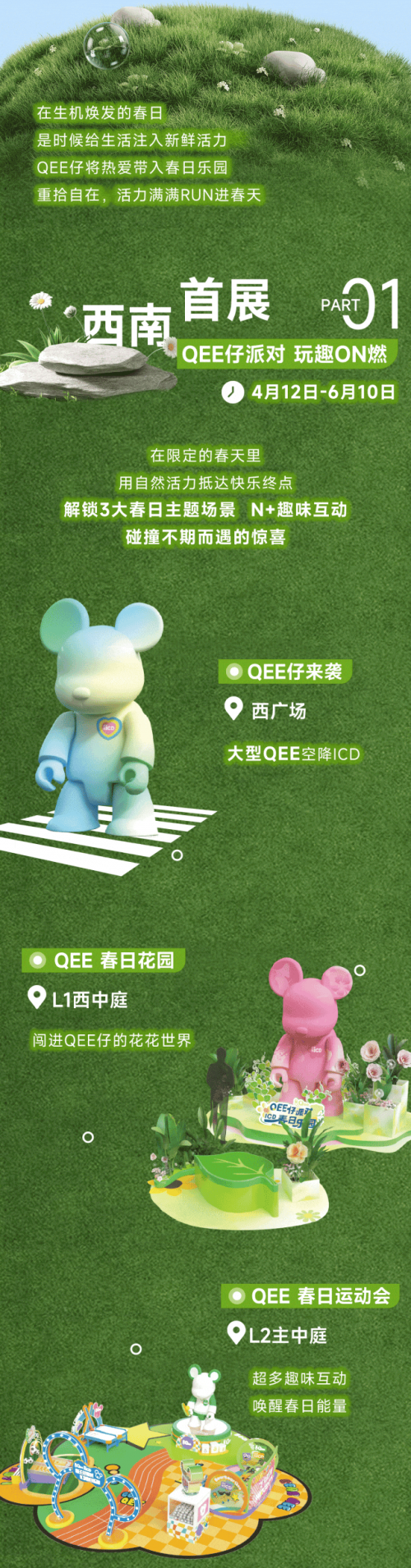 联合环贸ICD推出QEE仔派对西南首展,叠加分期礼遇、超值回馈零售、餐饮大额消费券等活动,激发消费活力。