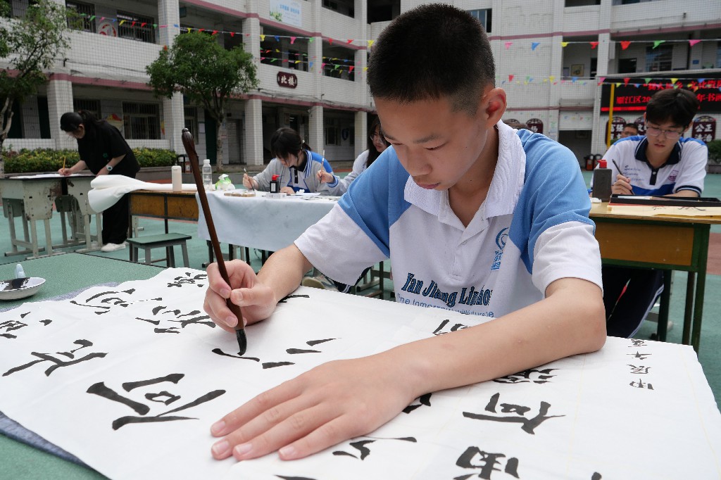 记者了解到,青少年书画传习比赛分中国书法、中国画两大类别,设小学、初中、高中三大组别,全区中小学生踊跃参加,展示书画才艺,弘扬传统文化,进一步唱响“爱资阳·爱雁江”品牌,也掀起了校园习书画、颂祖国、爱家乡的热潮。