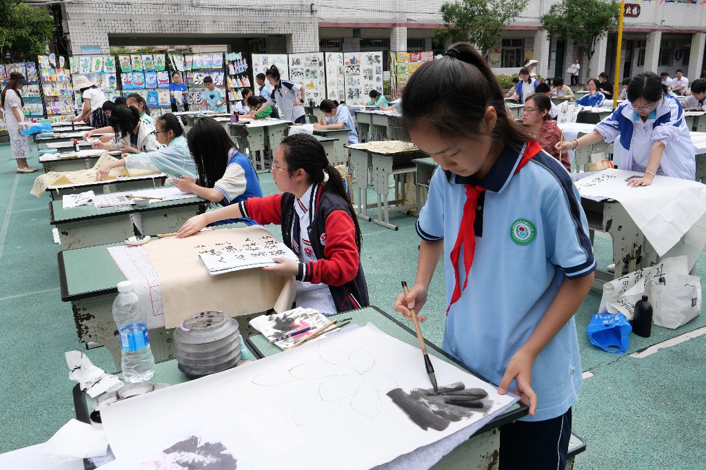 此次活动通过推选、互动、交流、展示等形式,为当地广大青少年打造了一个学习书画、创作佳品、展示技艺的平台,经过现场比赛,最终评选出优秀学生24人(其中:书法组12人、国画组12人)参加资阳市级选拔赛。目前,参赛选手正紧张有序地开展练习、培训,备战市级大赛。(图片来自资阳市委宣传部)
