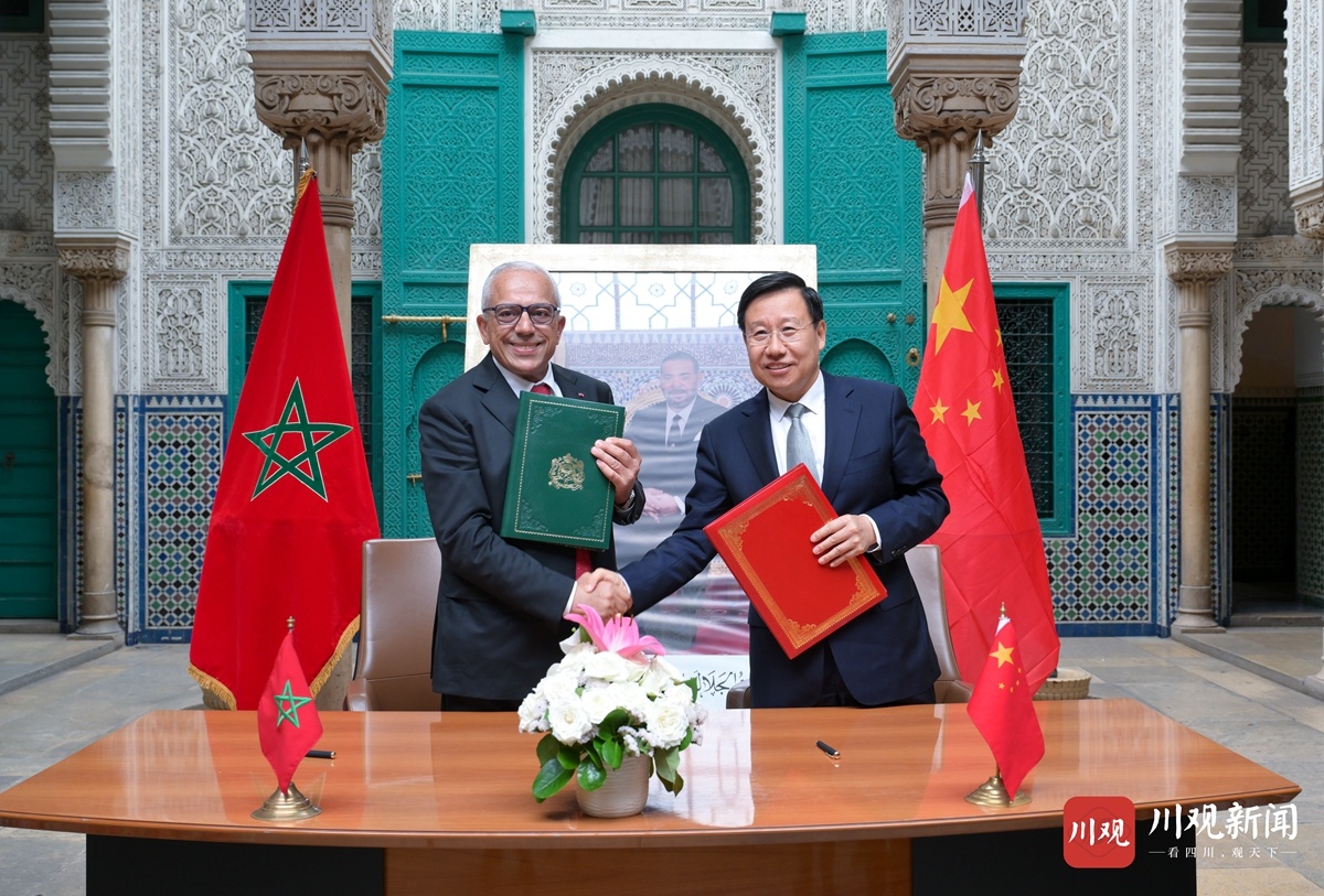 当地时间6月6日,省委书记、省人大常委会主任王晓晖与卡萨布兰卡—塞塔特大区主席马祖兹共同签署《中华人民共和国四川省与摩洛哥王国卡萨布兰卡—塞塔特大区建立友好合作关系谅解备忘录》。