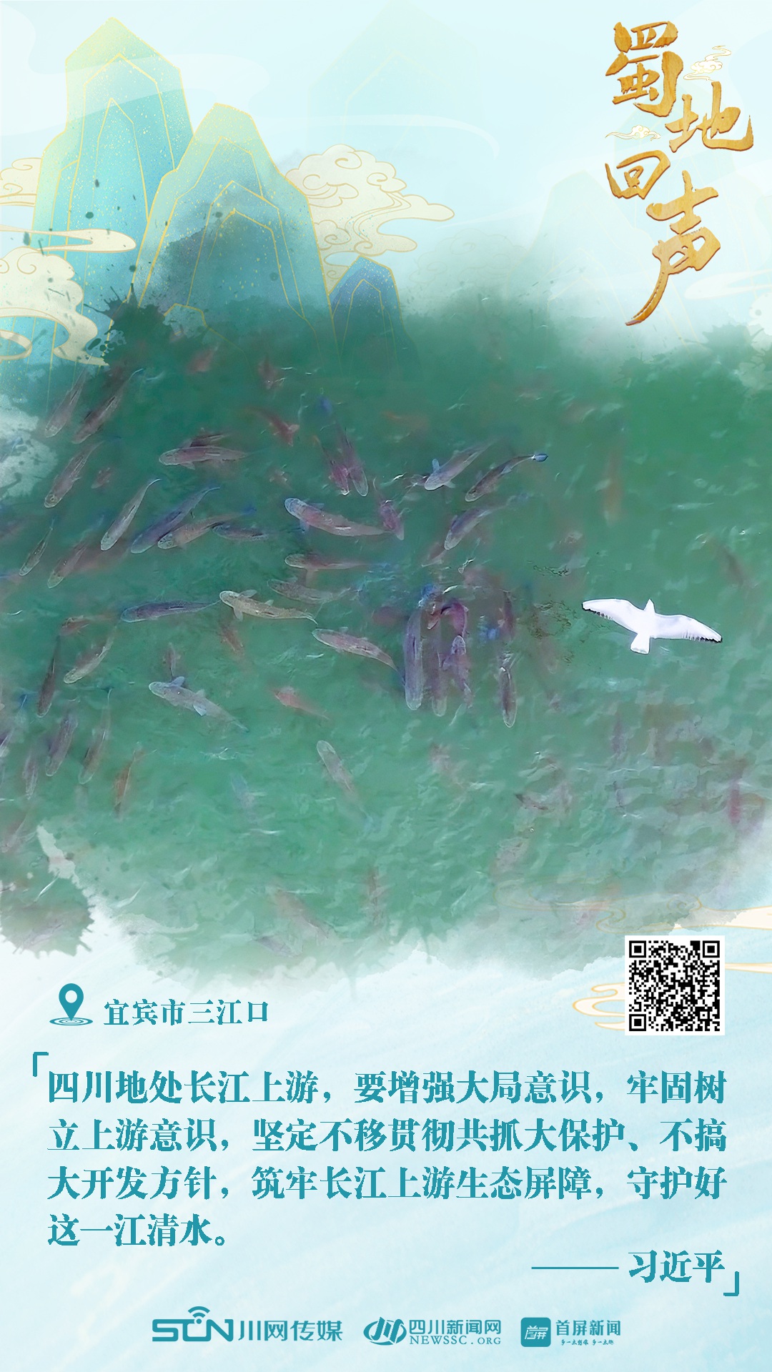 两年前,在宜宾三江口考察时,习近平总书记留下谆谆嘱托:“四川地处长江上游,要增强大局意识,牢固树立上游意识,坚定不移贯彻共抓大保护、不搞大开发方针,筑牢长江上游生态屏障,守护好这一江清水。”