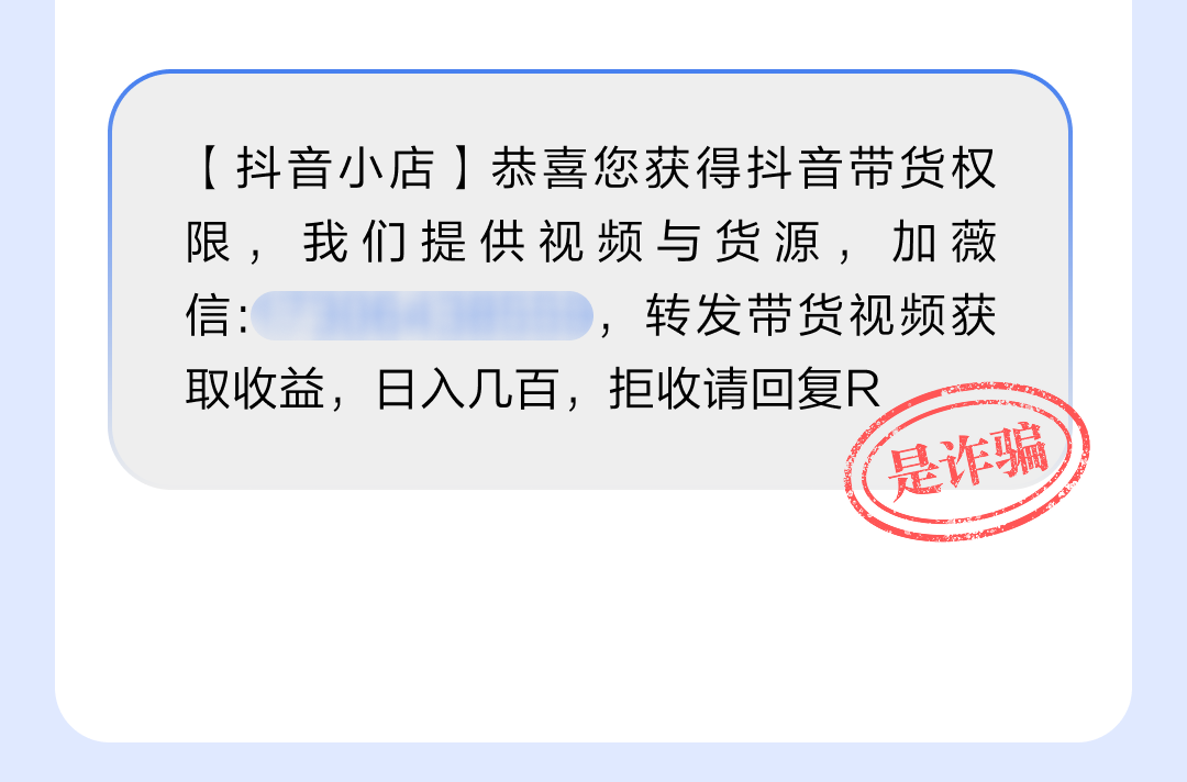 (图说:诈骗分子以“抖音小店”名义发送的短信)