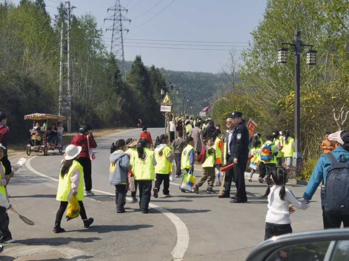 “请大家有序排队,不要拥挤。”九寨山景区入口处,交警直属三大队民警正指挥车辆有序通行。在景区内,对长下坡路段,景区安排专人提醒自行车游客提前减速慢行,严防事故发生。针对春季旅游高峰,巴中经开区公安分局提前研判,在景区周边道路实施临时交通管制,增设停车位200余个,并利用新媒体平台发布出行提示,引导游客错峰出行。