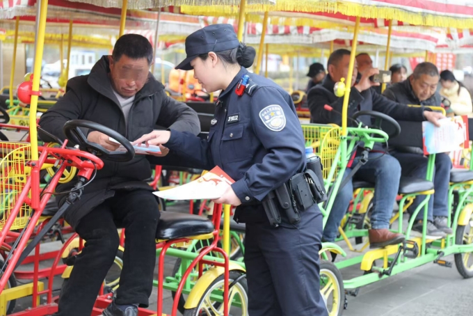“您这儿的救生设备需要定期检查,确保游客安全。”3月24日,民警来到秋池游船码头,对游船经营户戚老板说道。戚老板连连点头:“警察同志,您放心,我马上安排人处理。”在露营区,民警对管理方提醒道,“草坪上烧烤要注意用火安全,近期外地已发生了几起在草坪上用火引发汽车燃烧的事故”。针对春季游客激增的情况,巴中经开区公安分局联合应急管理、市场监管等部门,对景区内游船、露营区、自行车租赁点等场所开展“体检式”检查,现场整改隐患15处,确保游客玩得安心、行得放心。