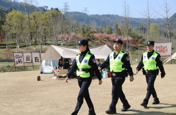 春日的阳光洒在巴中经开区九寨山景区,宽阔的草坪上帐篷点点,游船在秋池中悠然荡漾,自行车爱好者穿梭于林间小道,欢声笑语回荡在山谷中,而在人群中,一抹抹“藏蓝”身影格外醒目,他们穿梭于景区各个角落,用行动守护着游客的安全与笑容。