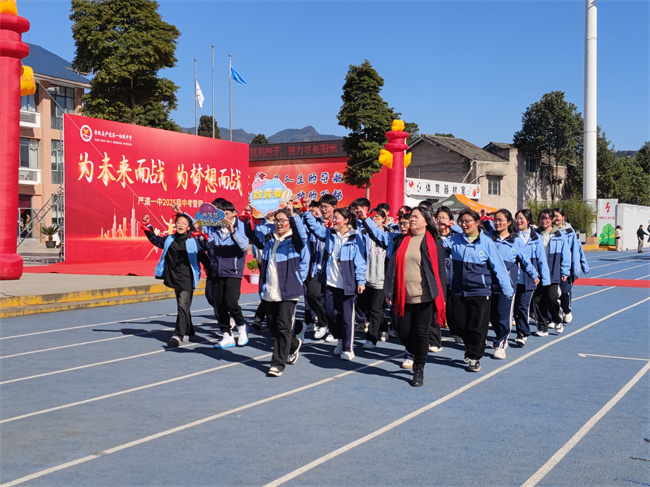 3月25日上午,荥经县严道一中举行"为未来而战,为梦想而战"2025届中考加油会,全体师生齐聚运动场。