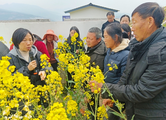 “一要适时使用氮磷钾肥增强植株抗性,二要提前做好开沟排涝防止田间渍涝,如果叶片发病率已经达到10%以上、茎发病率在1%以下时就要开始喷药……”现场,农技专家根据当地油菜实际生长情况,重点讲解了菌核病、蚜虫等常见病虫害的识别与防治知识,村民围成一团听得十分投入。