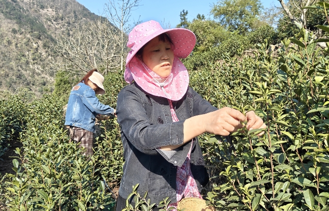 春日茶园绿意盎然,巧手翻飞采茶正忙。