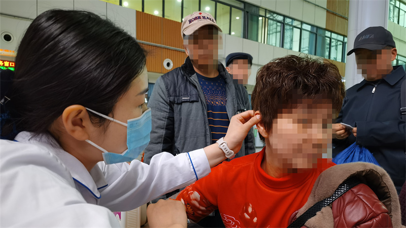 活动现场,医护人员免费为市民提供血压测量、健康咨询等服务,并重点展示了中医特色疗法——耳穴压豆。通过刺激耳部穴位调节脏腑功能,该疗法主要改善便秘、失眠、焦虑等症状,吸引众多患者体验。一位接受耳穴治疗的阿姨表示:“没想到小小一粒豆贴在耳朵上,肚子很快就有了蠕动感,中医技术真是神奇!”