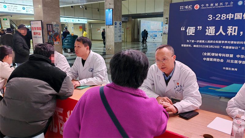3月28日是“中国便秘日”,川北医学院附属医院中西医结合肛肠科在茂源南路院区门诊大厅举行了主题为“‘便’通人和,畅享人生”的公益义诊活动。本次活动旨在普及肠道健康知识,倡导科学防治便秘,推广中西医结合诊疗特色,切实为市民提供优质便捷的医疗服务。