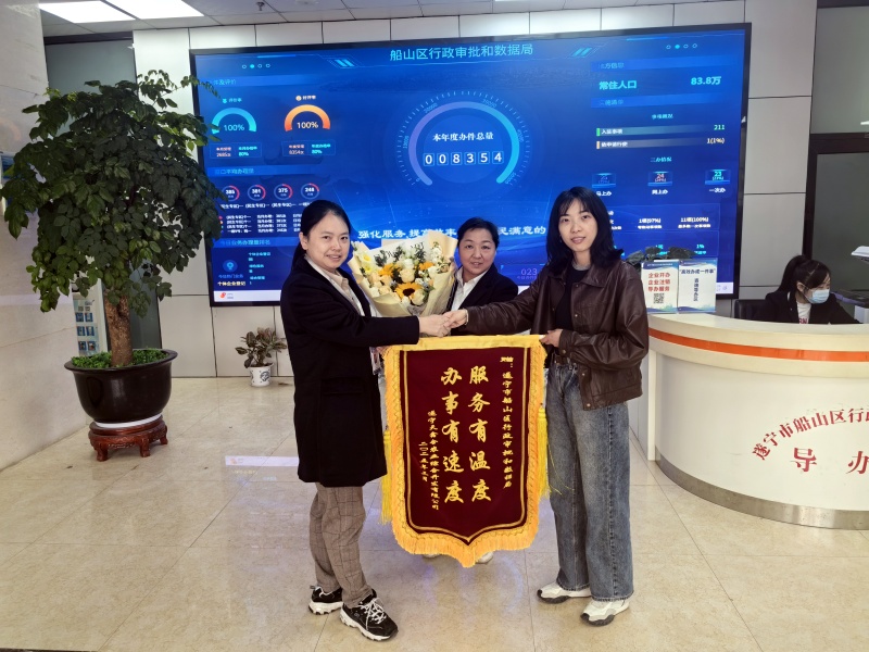 “锦旗既是认可,更是责任。”船山区行政审批和数据局党组书记、局长颜静表示,“下一步我们将持续推动第二批18个国家重点‘高效办成一件事’,并探索‘AI+人工’智能导办服务,以政务服务‘硬举措’提升发展‘软实力’,为船山区高质量发展注入新动能。”